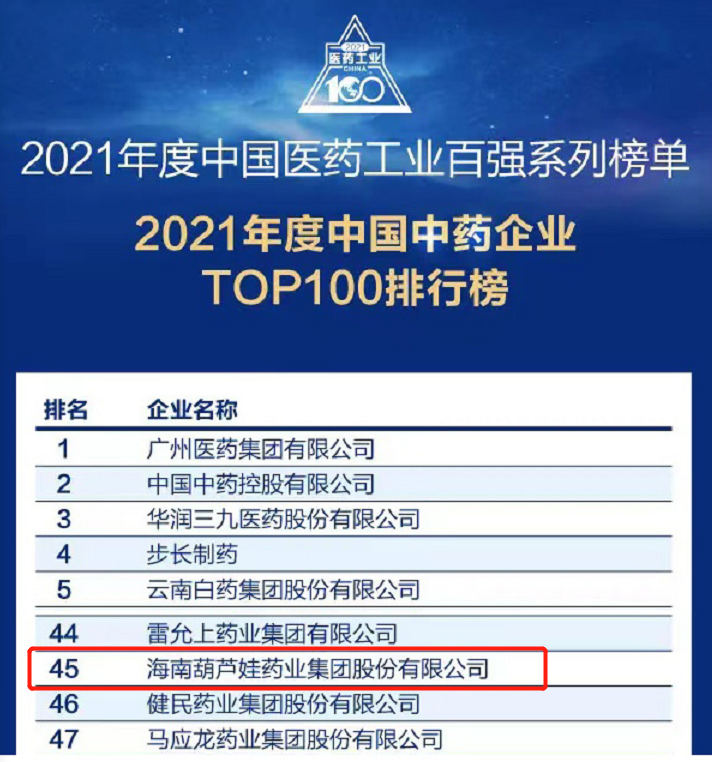 7月12日,2022米思会(中国医药健康产业共生大会)在风景如画的湖州·太湖隆重开幕,万众瞩目的2021年中国医药工业百强系列榜单荣耀揭晓。尊龙凯时药业集团凭借扎实的研发生产实力和稳健的市场推广能力,继2019年、2020年后连续第三年成功入选“2021年中国中药企业TOP100排行榜” ,排名稳步上升至第45位!
